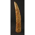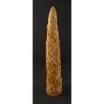 A large man made moulded carved tusk ornament with animals from the jungle, monkeys and elephants etc - dimensions 39cm tall