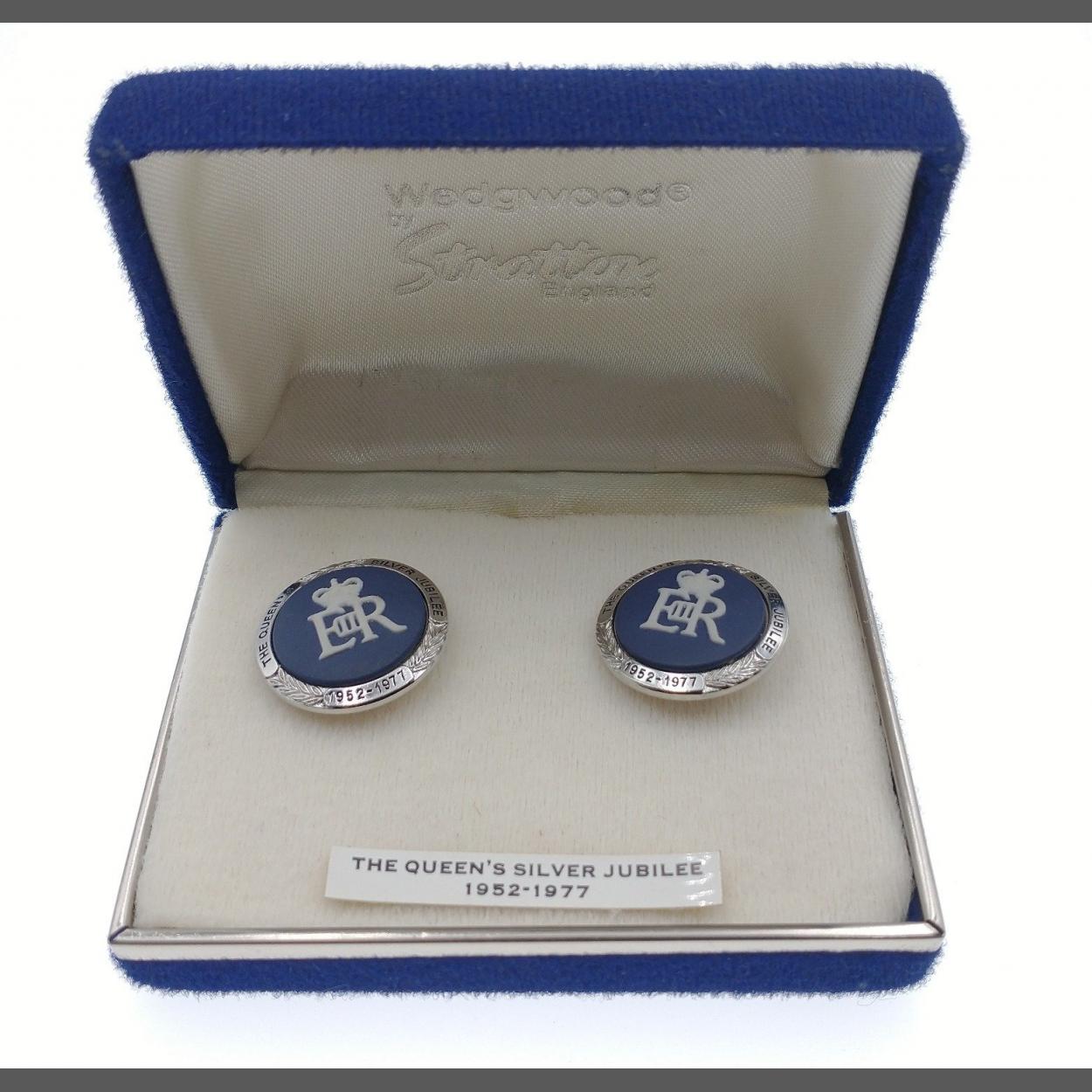 COLLECTABLE! A boxed pair of WEDGWOOD by STRATTON Queen's silver jubilee 1977 cufflinks
