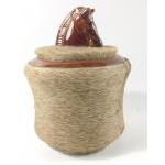 A most unusual ceramic horse jar covered in hair standing 22cm high