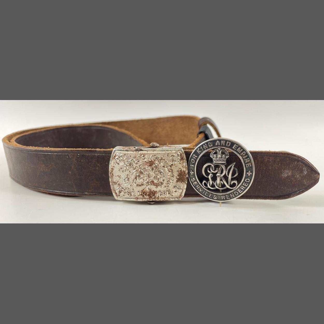 One vintage Girl Guides belt approx 72 cm long, a cap badge with the motto Services rendered for King and Empire