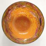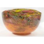 A BEAUTIFUL swirly orange based multicoloured coloured glass fruit bowl - dimensions 30cm diameter approx