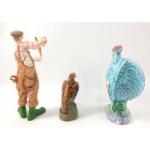 A GRANT PALMER 'Views of Life' figure 'Green Fingers', a colourful cockerel and a BESWICK Whyte & Mackay golden eagle whisky bottle modelled by JG Tongue in 1981