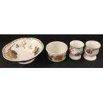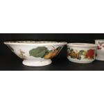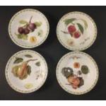 A part dinner service 'Hooker's Fruit' by QUEEN'S for the Royal Horticultural Society Collection to include 4 plates (27cm), 4 bowls (16cm) and 1 high sided scalloped-edge bowl (15cm) plus a PORTMEIRION bowl (8cm dia), ramekin dish (8cm) and kitchen clock (27cm), and 2 FOLEY eggcups,