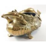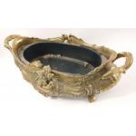 An ORNATE large, oval brass plant holder with liner 42cm long, inner measurement 27x15cm