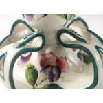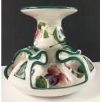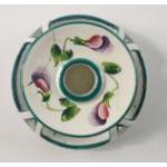 A piece of WEMYSS WARE - a nice candle holder decorated with flowers - the piece has two chips/small pieces missing and has been damage repaired, but intact on the top lip of the candle, but doesnt detract from this lovely piece - dimensions 11.5cm height x 14cm base diameter