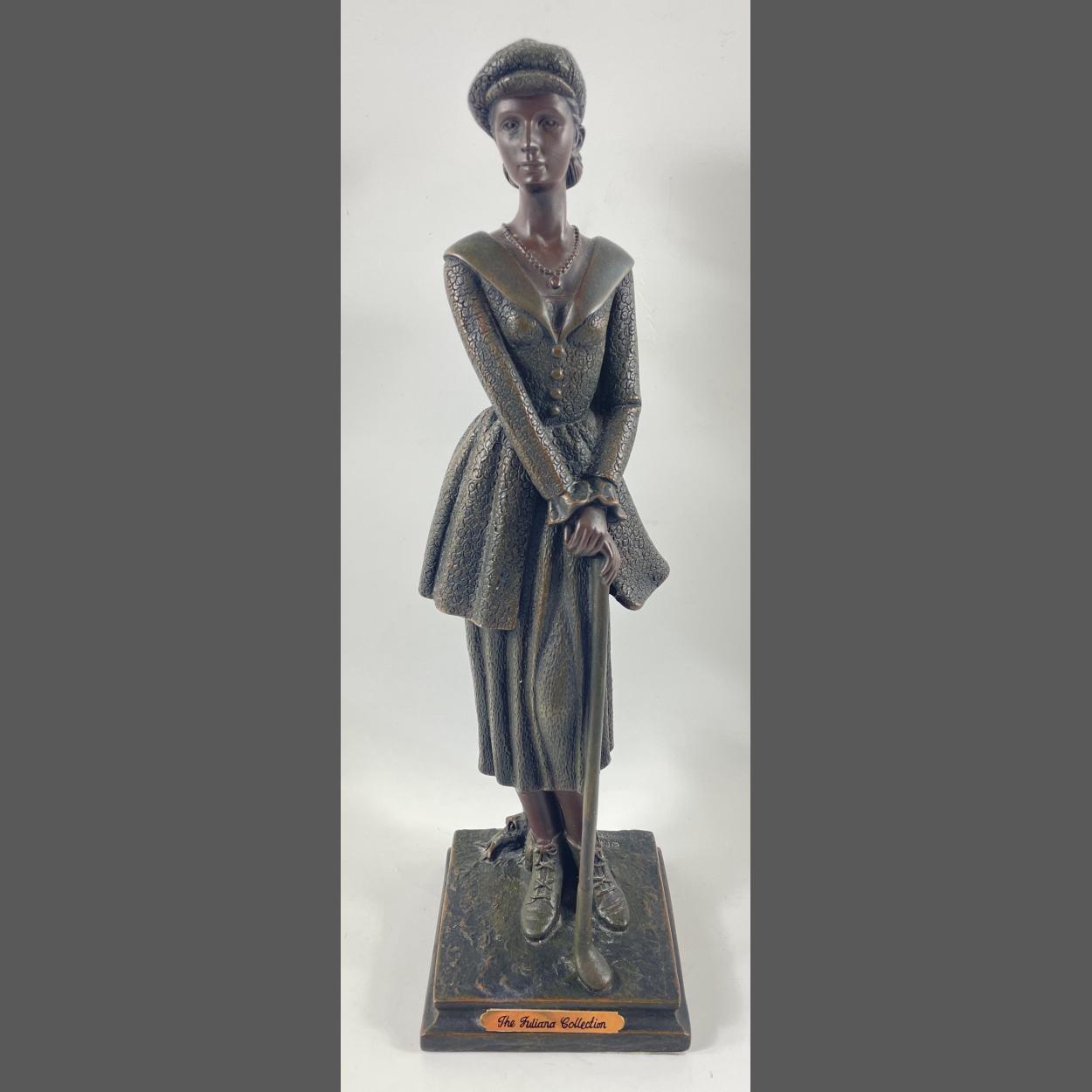 A large CROSA female golfer cold cast bronze effect figure from the Juliana Collection, label on front 'The Julian Collection', stamped 'Crosa 1991' to the back, stands 37cm tall
