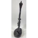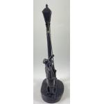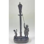 A vintage GENESIS (E/5000) fine arts bronze lamplighter with a boy and small dog stands 31cm tall