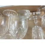 A box of mixed glassware to include 6 red wine glasses inscribed Baberton Golf Club, a pair of champagne flutes, 3 long-stemmed hock glasses inscribed with grapes and vines, 4 hi-ball glasses etc