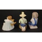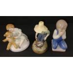 Three small figurines to include ROYAL DOULTON My Teddy (HN 2177) plus 2 boy figurines with covered-up maker's details, one a boy frying a fish on an open fire (11cm), possibly Royal Doulton "River Boy" HN2128 the other a boy kneeling (10cm)