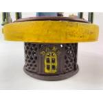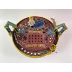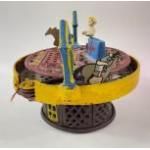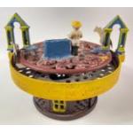 A vintage cast iron MECHANICAL MONEY BANK with horse racing to top, marked 'Patented Aug 15 1871'