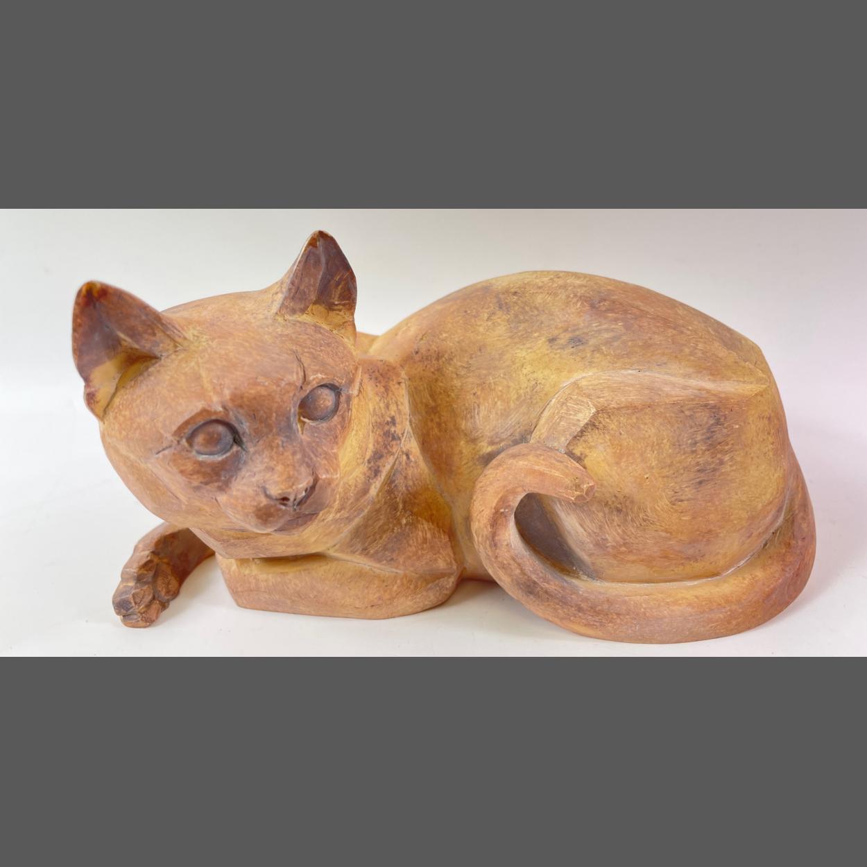 A vintage 1998 Border Fine Arts Cubist Cat - Lying Down (Stone) (model 541532)17cm Long