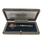 Cased Victorian Scottish Gold kilt pin. Just over 6cm with working pin. 4.6g in weight. Lovely bloodstone agate shaft No hall mark but previously tested to 15ct.