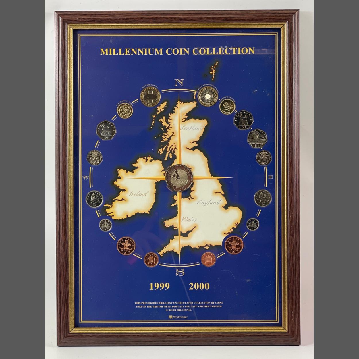 Framed Coin Set - Millennium Coin Collection 1999-2000 - dimensions 64cm x 34cm approx