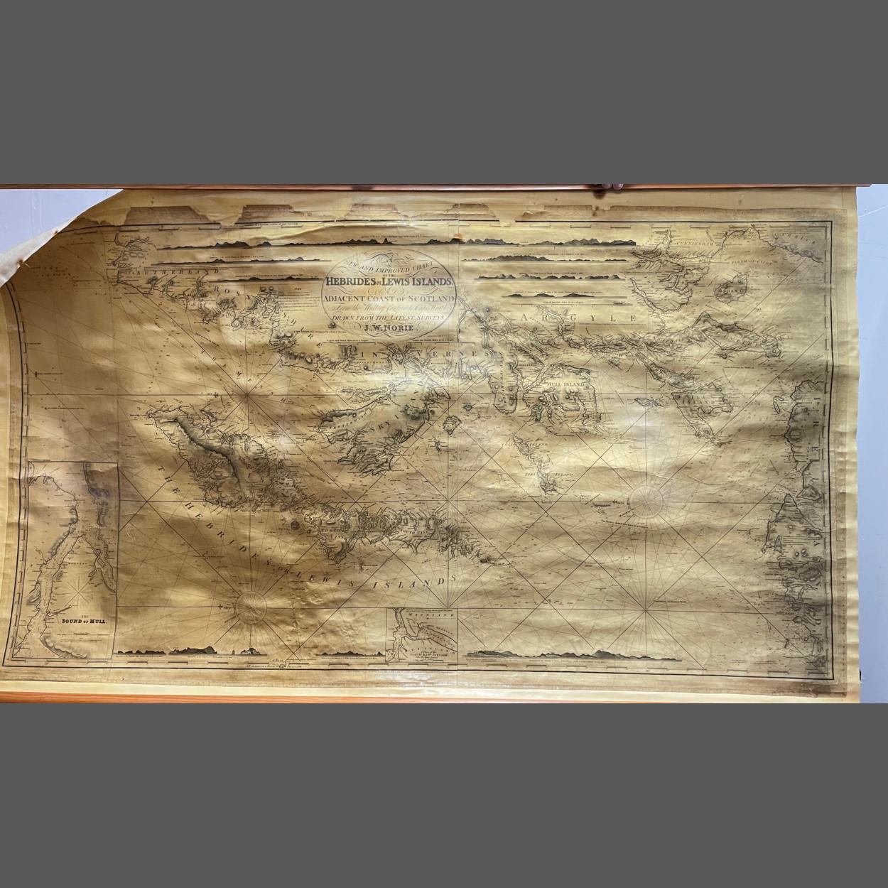 A large VINTAGE wall map of HEBRIDES and LEWIS Islands dimensions 5ft x 3ft
