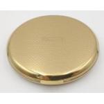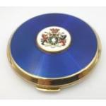 A STRATTON of LONDON face powder compact ( 8cm dia), with a royal blue face and coat of arms design, comes with pouch and box