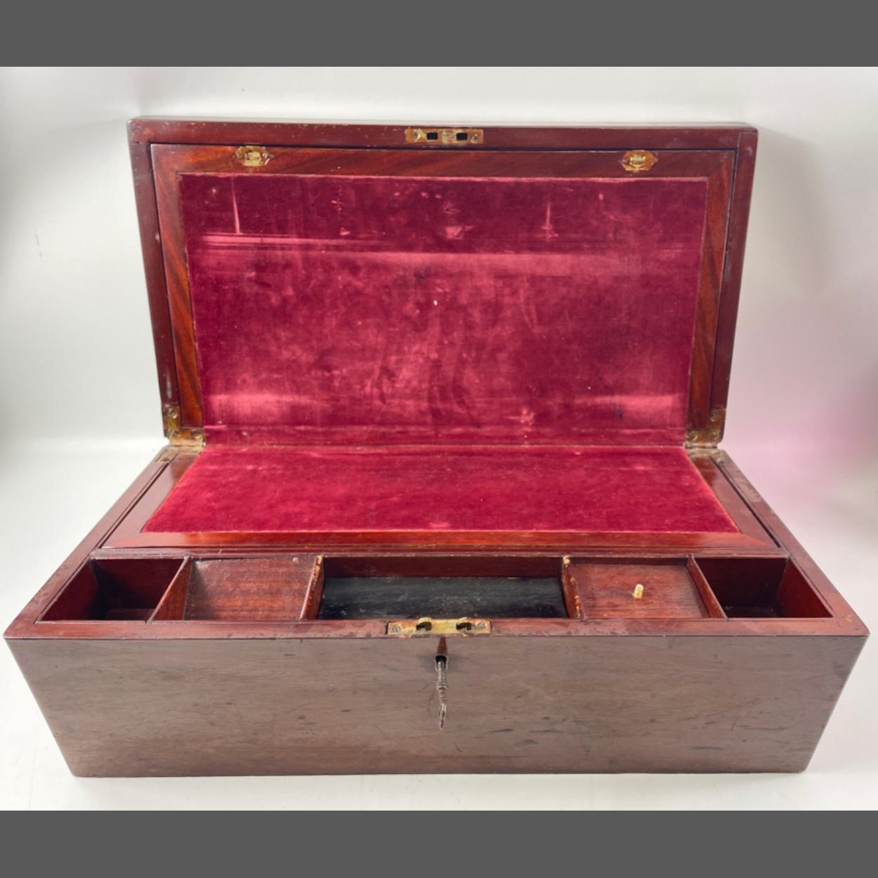 A nice VICTORIAN mahogany correspondence box - dimensions 51cm long x 16cm wide x 17cm depth approx