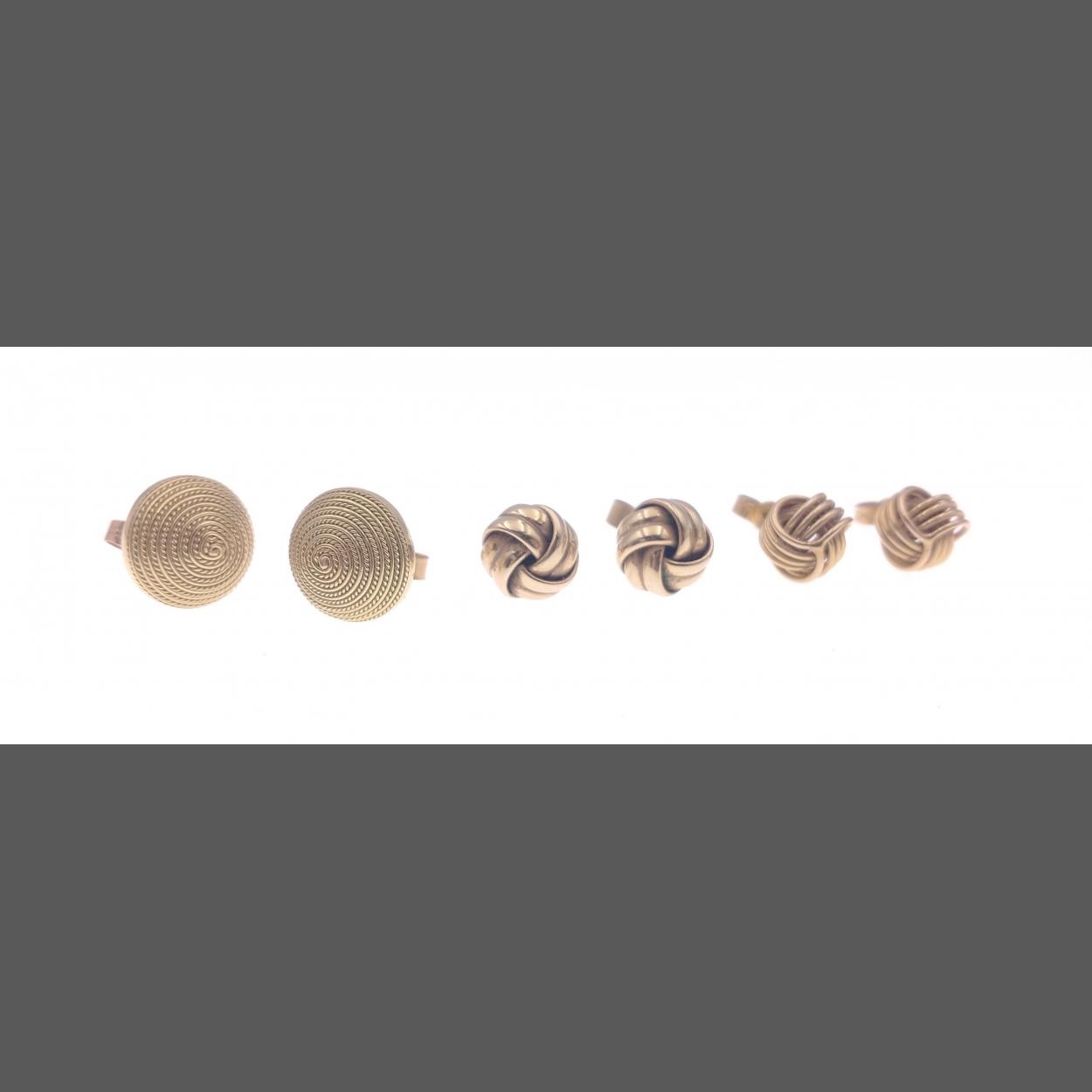 Three pairs of gold stud earrings - 1 pair of 750 (gross weight 5.0g) plus 2 pairs of 9ct knotted design (gross weight 4.8g)
