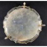 A nice circular SILVER Hallmarked Birmingham scalloped edged tray on three raised feet - dimensions 20.5cm diameter x height 3cm , the tray surface has some light surface scratches - overall weight 217g approx
