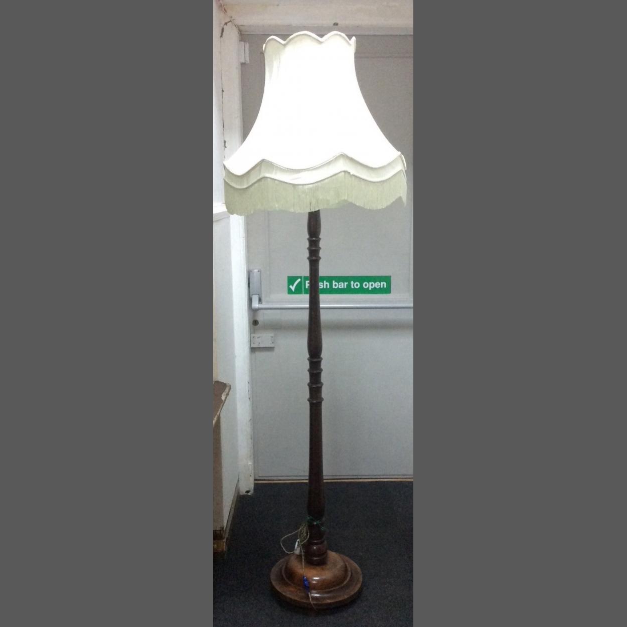 A VINTAGE oak floor lamp with large shade - 6.5ft height approx