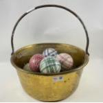 From a traditional Scottish home where in days of yore a set of indoor bowls was kept by the front door, this set of 12 bowls in a used condition, believed to be early WEMYSS, comes within its own substantial brass jelly pan which until recently had stood by a front door for several generations