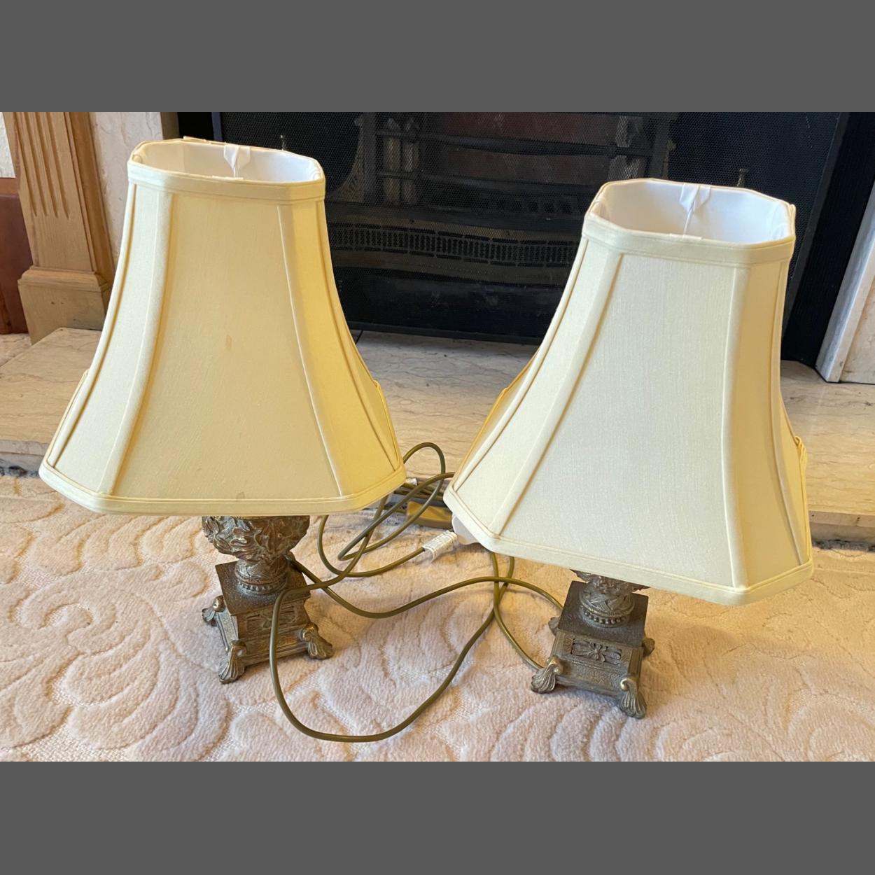 A pair of modern ORIENTAL form ceramic table lamps with shades - dimensions 72cm height approx