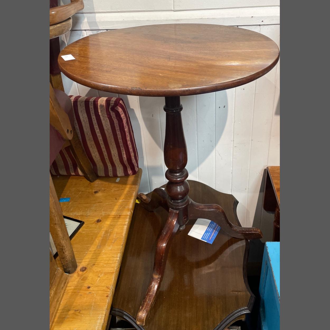 A small mahogany circular topped Edwardian wine table supported on tripod feet 3ft height and 1ft diameter approx