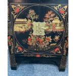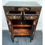 ORIENTAL decorative red and gold traditional design lacquered black based 2 door and two drawer side cabinet - unused item in storage