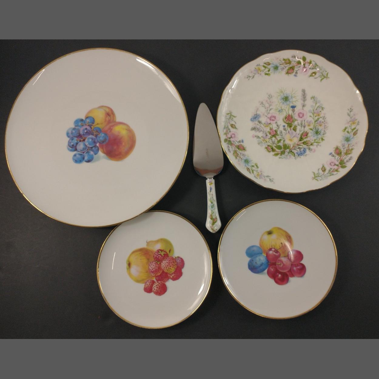 An AYNSLEY Wild Tudor cake plate (26cm) with matching cake slice plus a THOMAS of Germany large fruit platter(32cm) and 2 matching plates (20cm)