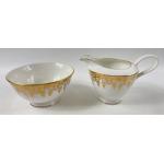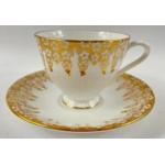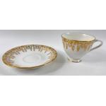 A ROYAL STANDARD gold filigree tea service comprising 6 each of cups, saucers, side plates, milk jug, sugar bowl and cake plate