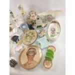 A mixed box with lots of china to include a JERSEY POTTERY covered butter dish, a WEDGWOOD Girl Guides diamond jubilee dish (11cm), a floral design vase by ROSENTHAL Studio Linie (15cm tall), a WEDGWOOD 'Chinese Legend' dish (16.5cm dia) and much, much more