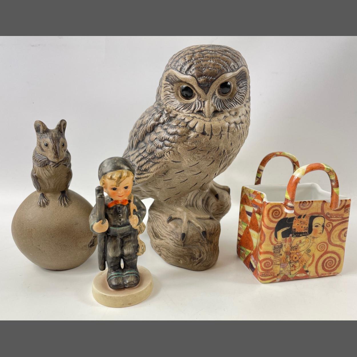 A POOLE stoneware barn owl signed by BARBARA LINLEY ADAMS (19cm tall) with a POOLE stoneware mouse on an apple (13cm tall)