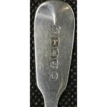 A small collection of silver hallmarked condiment spoons to include one Birmingham 1825 by silversmith EDWARD THOMASON with initial 'P' on handle (gross weight 14.5g), one Exeter 1815 by silversmiths JOSIAH WILLIAMS & CO with initials 'ED' on handle (gross weight 11.5g), one London 1829 by silversmith T COX SAVORY with initials 'JJB' on handle (gross weight 9.9g),