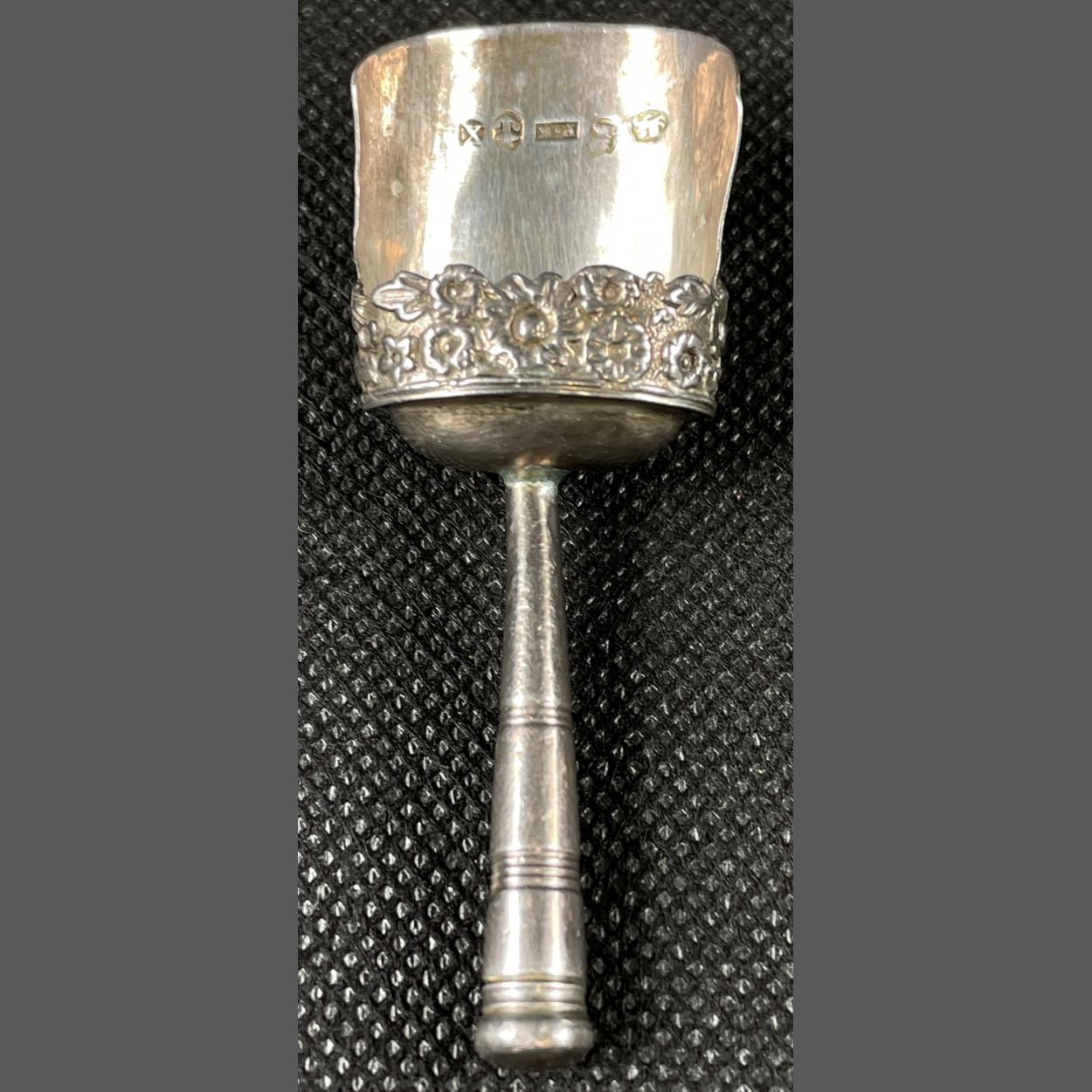 A small decorated salt scoop (8cm long), silver hallmarked Birmingham 1821, by silversmith PETER KEMPSON JR, gross weight 8.5g