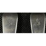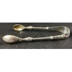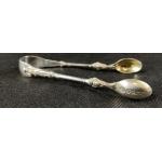 A mixed silver hallmarked collection to include a tea caddy spoon Birmingham 1930 by silversmith AJ BAILEY gross weight 16.5g, 2 mustard spoons London 1834 by JONATHAN HAYNE gross weight 22.5g, 2 mustard spoons hallmarked, possibly London 1808, gross weight 21.5g, a pair of sugar tongs Sheffield 1881, gross weight 24g, a tea strainer Sheffield 1881 gross weight 16g