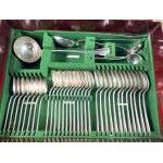 FULL large 137 piece approx QUALITY COOPER BROTHERS EP and stainless steel 12 place setting cutlery all within a SUBSTANTIAL wooden and lined three layer canteen with carry-brass handles on either side, to include soup spoons, dessert spoons, table spoons, gravy spoons, soup ladles, sauce ladles, egg spoons, tea spoons, table forks, dessert forks, salt and pepper set missing, dessert knives, table knives, game serving carvers, game serving forks and a steel.