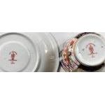 A ROYAL CROWN DERBY tea service in the traditional Amari pattern to include 7 cups (1 cracked), 8 saucers and 6 side plates plus a small scalloped edged dish 11.5cm long