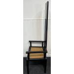 UNUSUAL! An ORIENTAL HIGHLY decorative black lacquered high backed oriental seat with a nice floral pattern - with a nice reed seat-pad - new and unused item in storage