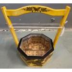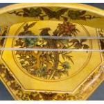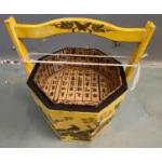 ORIENTAL decorative mild yellow traditional flora and fauna patterned and lacquered traditional inspired food carrier with handle - ideal for storage with haberdashery etc - new still in wrappers! unused item in storage