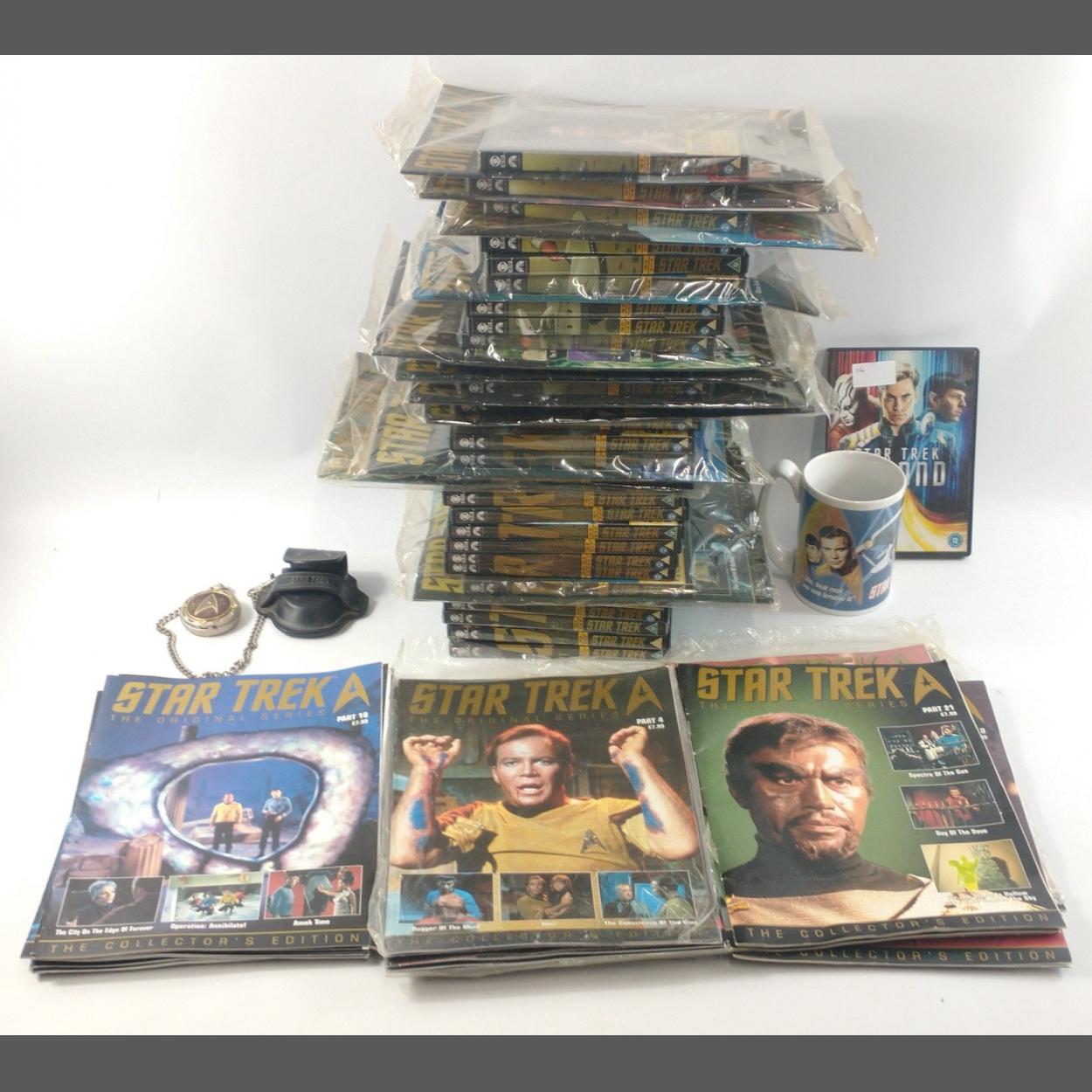 For the fans of STAR TREK - a Star Trek pocket watch in its own case plus multiple issues of the magazine 'STAR TREK: THE COLLECTOR'S EDITION including several still unopened in original wrappers complete with DVDs