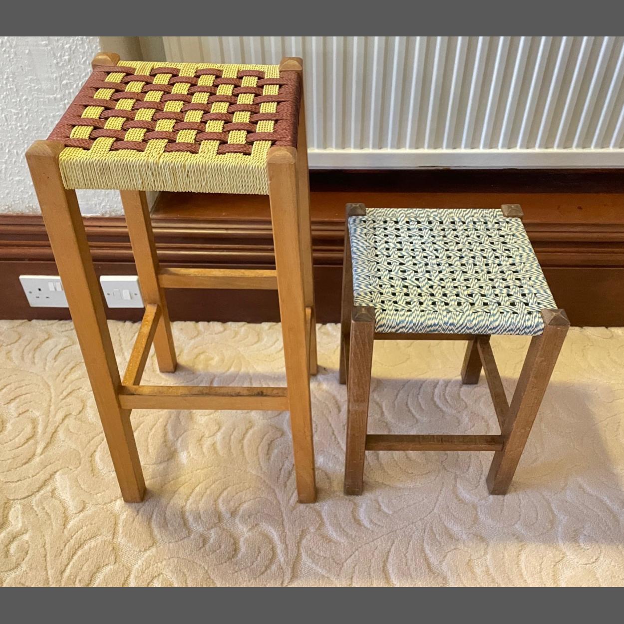 Tall bar style stool and a shorter stool - taller stool 68cm x 29cm square top, smaller stool height 44cm approx