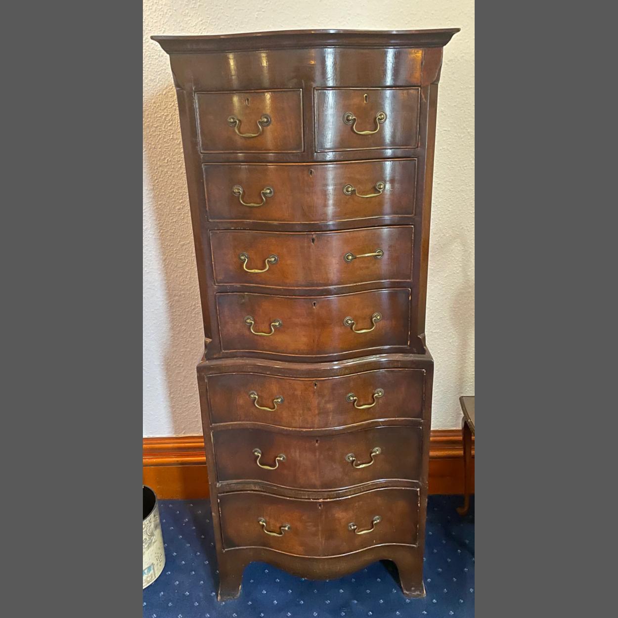 A NICE QUALITY chest on chest to include two over three drawers( top half) and three drawers below - height 153cm x width 62cm x depth 45cm approx ( comes in two halves)