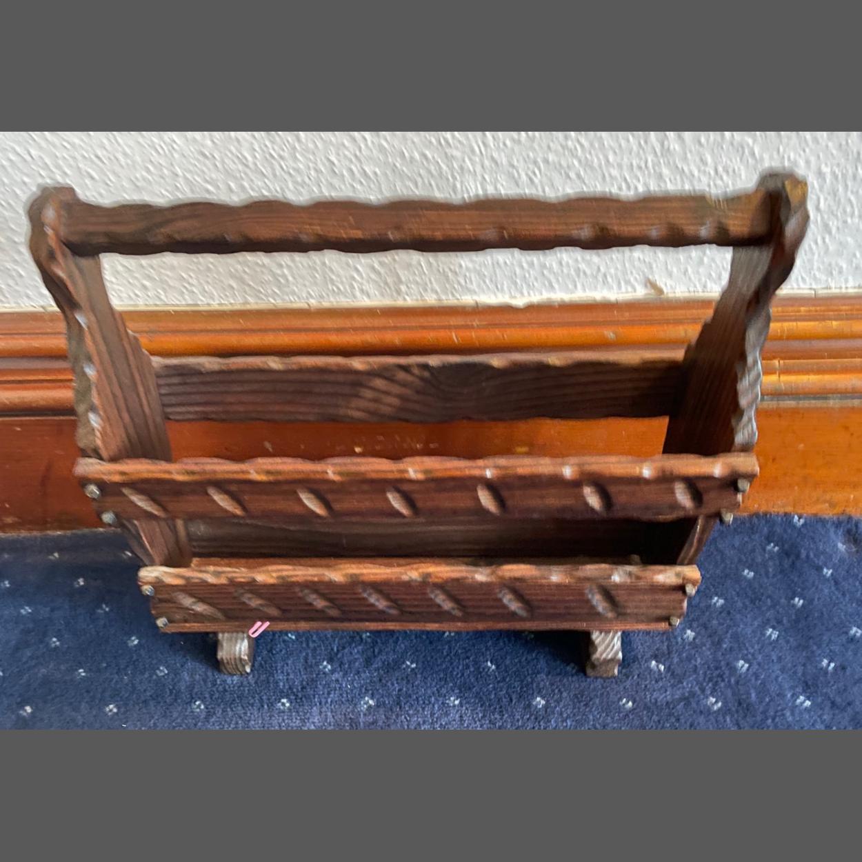 Wooden hand carved magazine rack - length 48cm x height 44cm approx