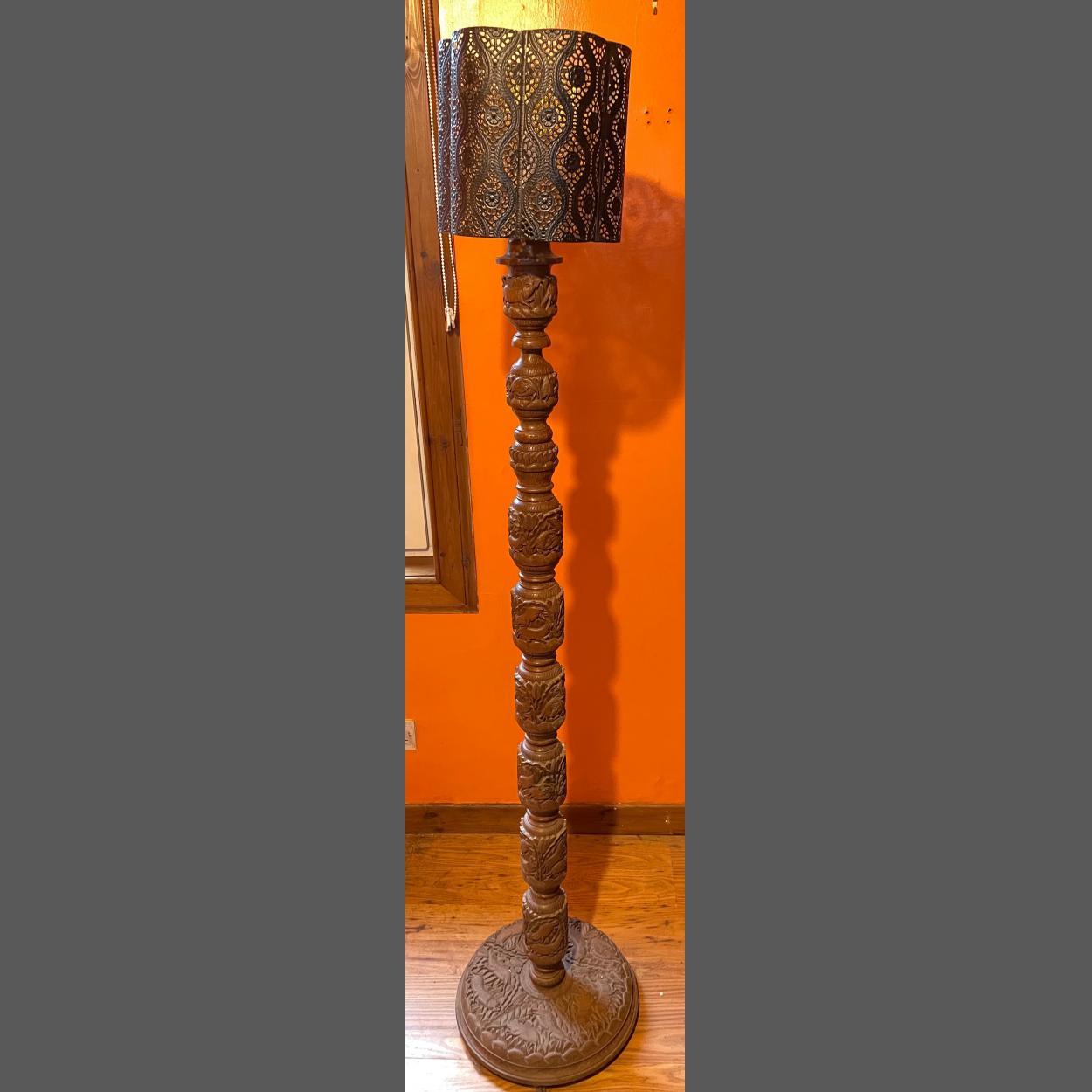 An INDIAN hand carved floor lamp / beautiful detail! - 6 ft height approx( the shade isn't original size)