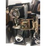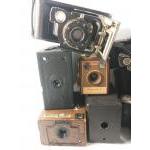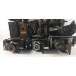 A collection of vintage BOX CAMERAS to include by KODAK, ENSIGN, etc
