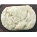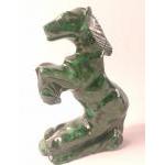 Collection of Oriental items to include a prancing jade style horse 14cm tall (neck has been repaired) with a small carved wooden stand (9cm tall, 1 loop missing), white stone with carved images of fish 5cm wide approx and small red resin Bhudda 3cm tall approx