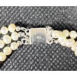 A 925 silver clasped 3 string small pearls with natural amethyst chips spacers 44cm long