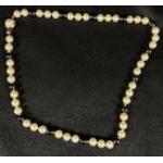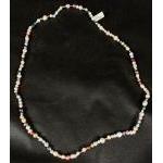 Three strings of pearls, 1 multi-coloured with silver clasp, 2 - 80cm long multi-coloured 3 - cream coloured with dark brown spacers