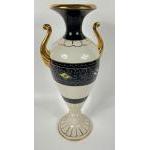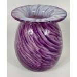 A mixed lot to include a WORLD glass GLOBE paperweight 8cm diameter, a nice ALUM BAY purple shaded quality glass medium sized vase 12cm height x 9cm, and a tall vase with golded handles and rim by ELLE 37cm tall x 7cm width approx