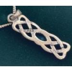 925 stamped silver pendant (L: 25cm) in Celtic knot design, set with marquise cut blue stone on a fine 925 stamped silver chain (L: 44cm approx) all in a presentation box