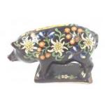 STUNNING ceramic piggy bank painted with blue, white and orange flowers. Has some slight damage to both ears, snout, back left leg and back left hind- but this does not detract from this decorative item!.